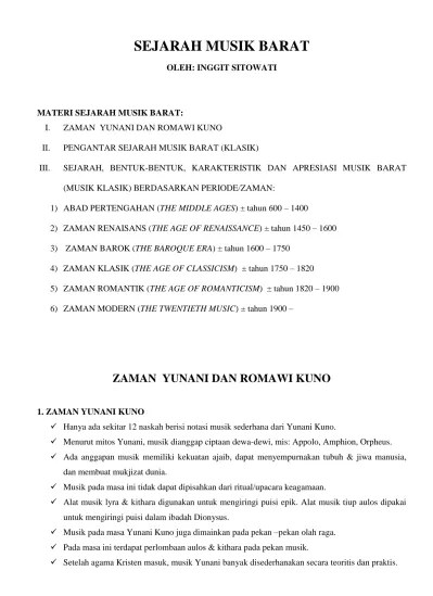 Pelajari sejarah musik barat dari zaman yunani kuno, romawi, pertengahan, renaisans, barok, klasik, romantik, peralihan & modern .